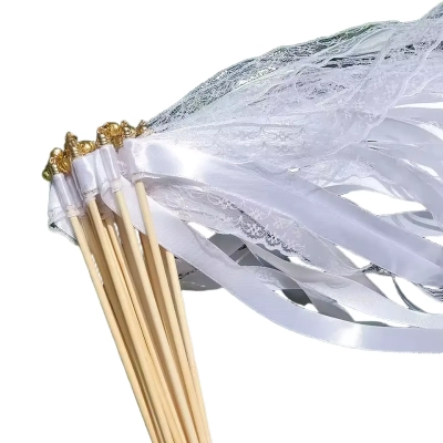 סרטים על מקל מסאטן בצבע לבן תחרה